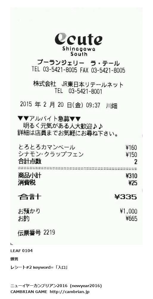 レシート#2 keyword=「入口」