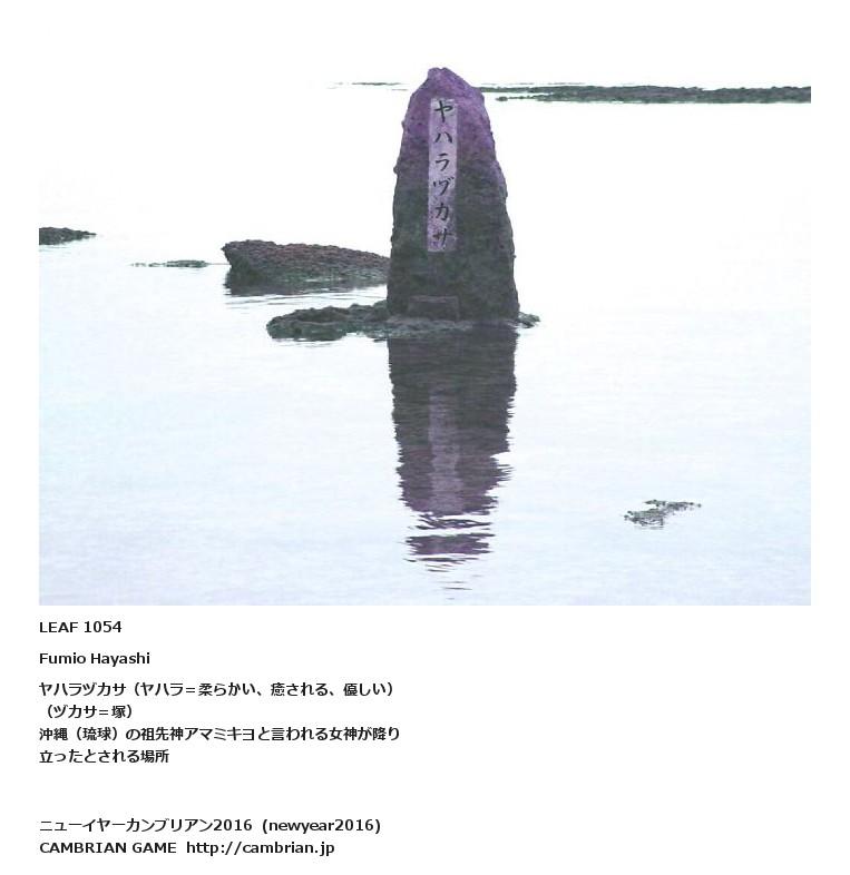 LEAF 1050フローに加えるLEAF 1054Fumio Hayashiヤハラヅカサ(ヤハラ=柔らかい、癒される、優しい)(ヅカサ=塚)沖縄(琉球)の祖先神アマミキヨと言われる女神が降り立ったとされる場所