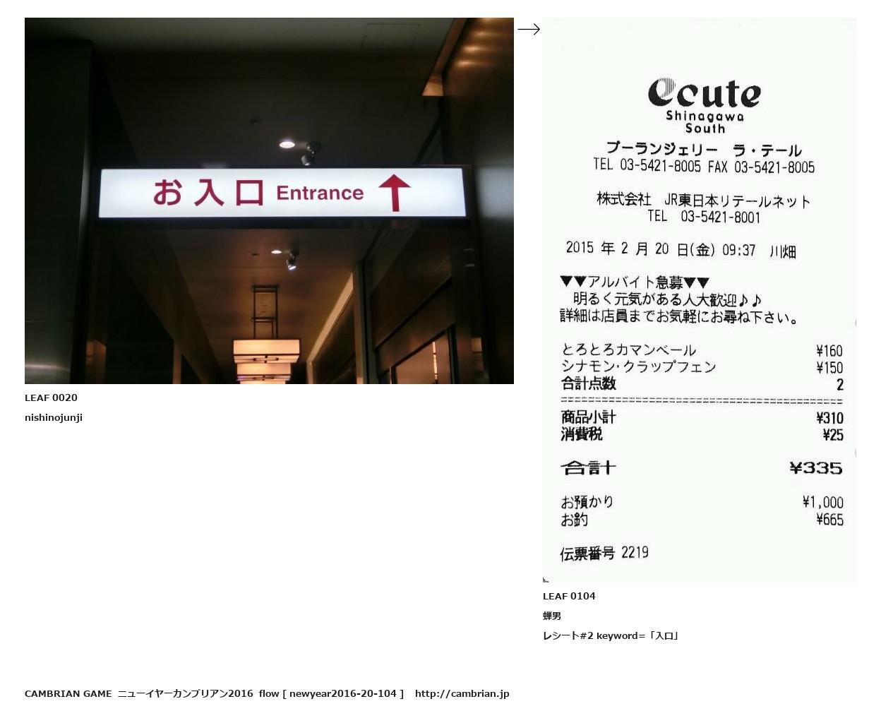 LEAF 0005フローに加えるLEAF 0020nishinojunji↑ここから上をフローから外す↓ここから下をフローから外すLEAF 0104蝉男レシート#2 keyword=「入口」LEAF 0114フローに加える