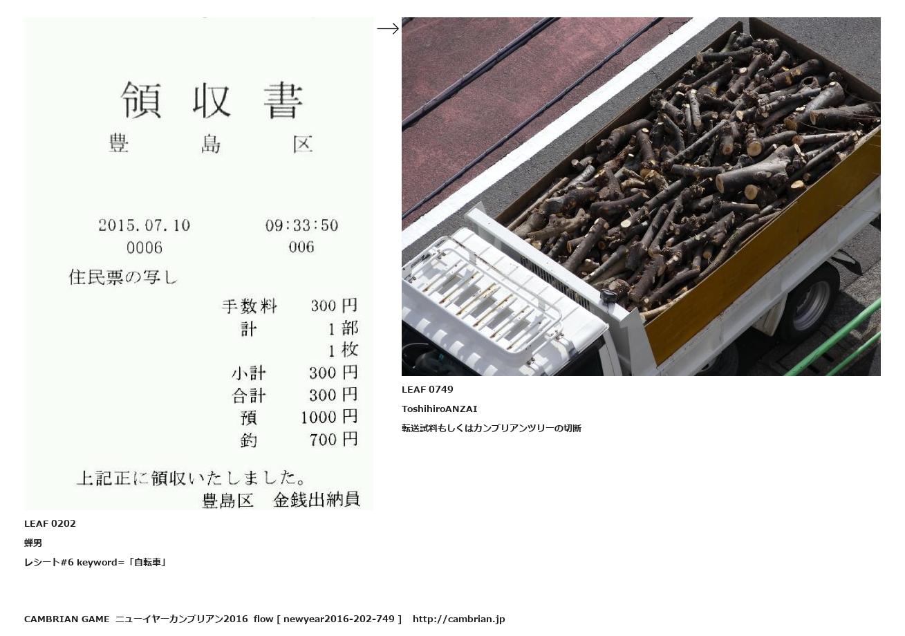 LEAF 0167フローに加えるLEAF 0202蝉男レシート#6 keyword=「自転車」↑ここから上をフローから外す↓ここから下をフローから外すLEAF 0749ToshihiroANZAI転送試料もしくはカンブリアンツリーの切断LEAF 0768フローに加える