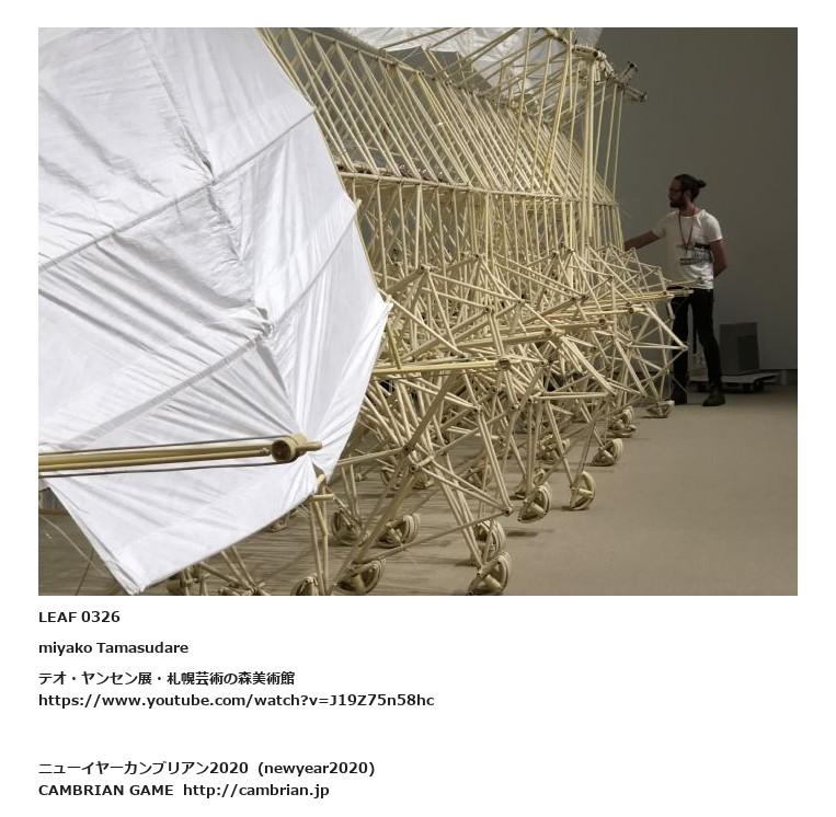 LEAF 0265フローに加えるLEAF 0326miyako Tamasudareテオ・ヤンセン展・札幌芸術の森美術館https://www.youtube.com/watch?v=J19Z75n58hcLEAF 0338フローに加える