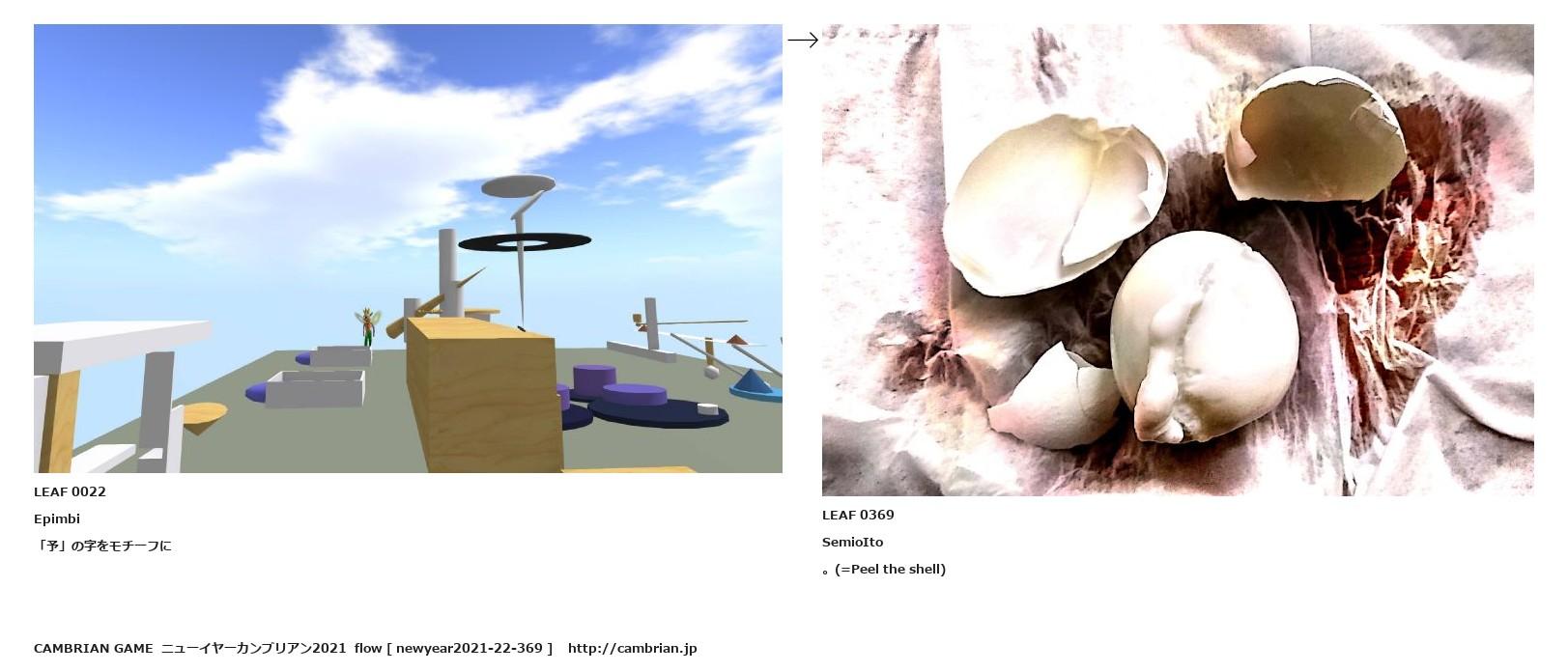 LEAF 0015フローに加えるLEAF 0022Epimbi「予」の字をモチーフに↑ここから上をフローから外す↓ここから下をフローから外すLEAF 0369SemioIto。(=Peel the shell)