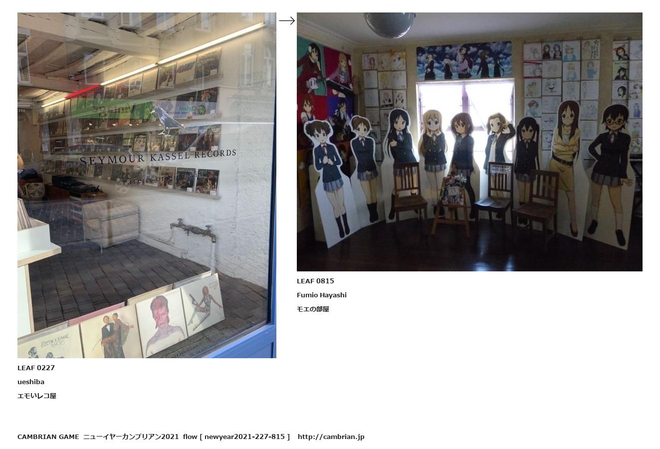 LEAF 0209フローに加えるLEAF 0227ueshibaエモいレコ屋↑ここから上をフローから外す↓ここから下をフローから外すLEAF 0815Fumio Hayashiモエの部屋LEAF 0983フローに加える