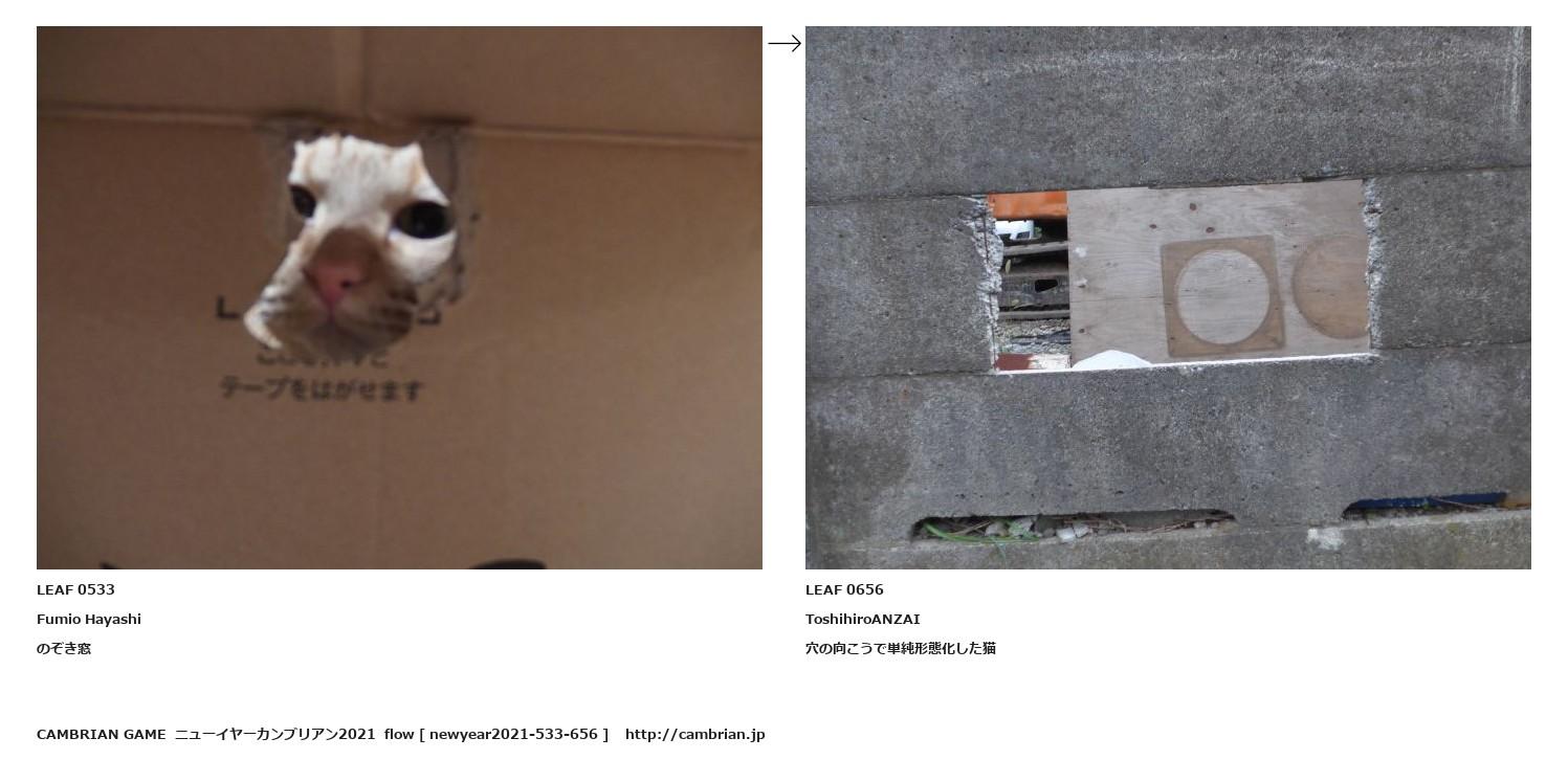 LEAF 0390フローに加えるLEAF 0533Fumio Hayashiのぞき窓↑ここから上をフローから外す↓ここから下をフローから外すLEAF 0656ToshihiroANZAI穴の向こうで単純形態化した猫