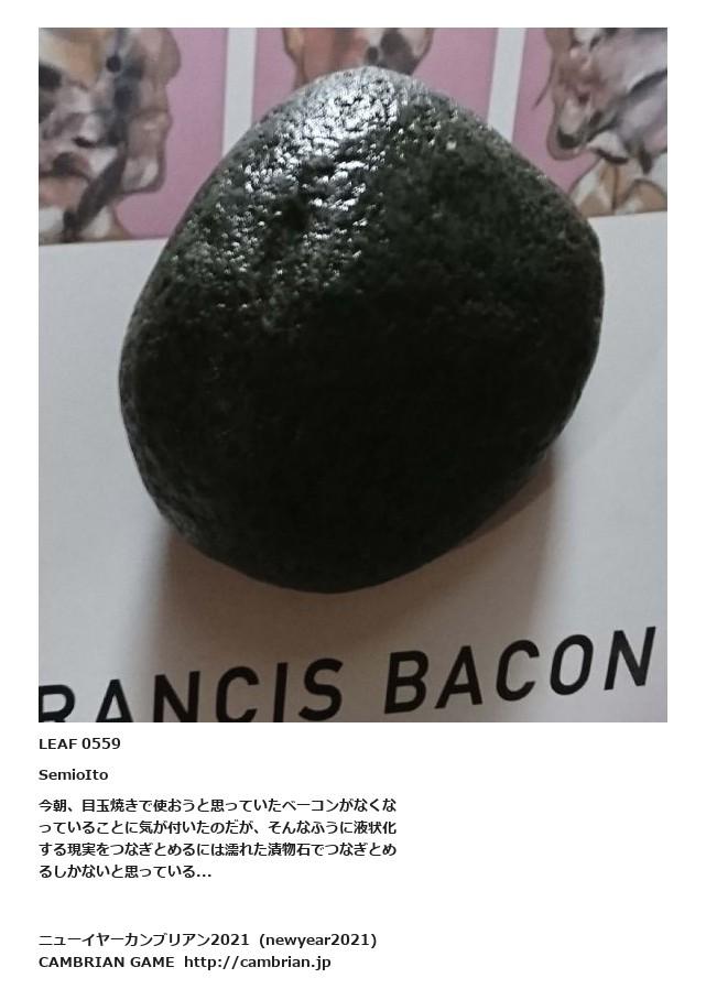 LEAF 0511フローに加えるLEAF 0559SemioIto今朝、目玉焼きで使おうと思っていたベーコンがなくなっていることに気が付いたのだが、そんなふうに液状化する現実をつなぎとめるには濡れた漬物石でつなぎとめるしかないと思っている...LEAF 0571フローに加える