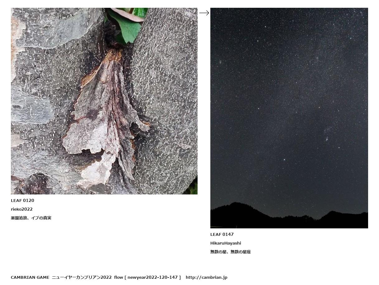LEAF 0036フローに加えるLEAF 0120rieko2022楽園追放、イブの真実↑ここから上をフローから外す↓ここから下をフローから外すLEAF 0147HikaruHayashi無数の星、無数の星座LEAF 1020フローに加える