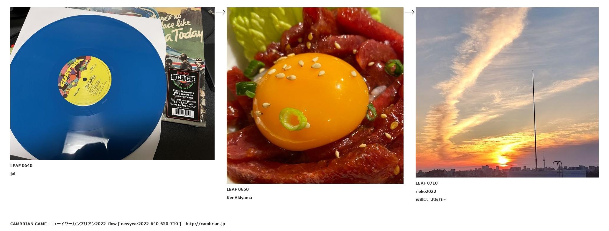 LEAF 0632フローに加えるLEAF 0640jai↑ここから上をフローから外す↓ここから下をフローから外すLEAF 0650KenAkiyama↑ここから上をフローから外す↓ここから下をフローから外すLEAF 0710rieko2022夜明け、お疲れ~