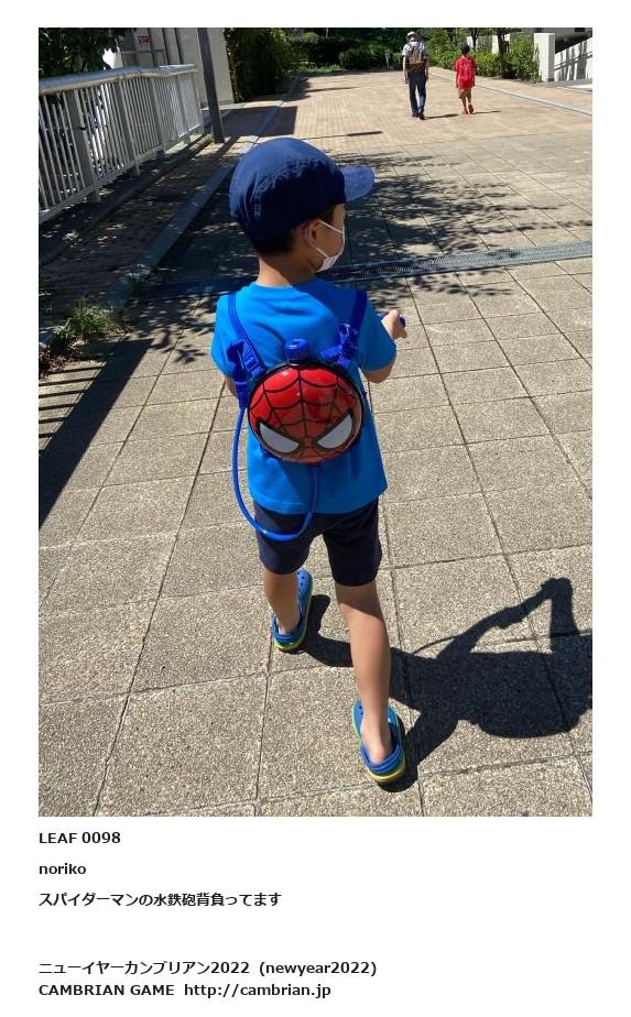 スパイダーマンの水鉄砲背負ってます