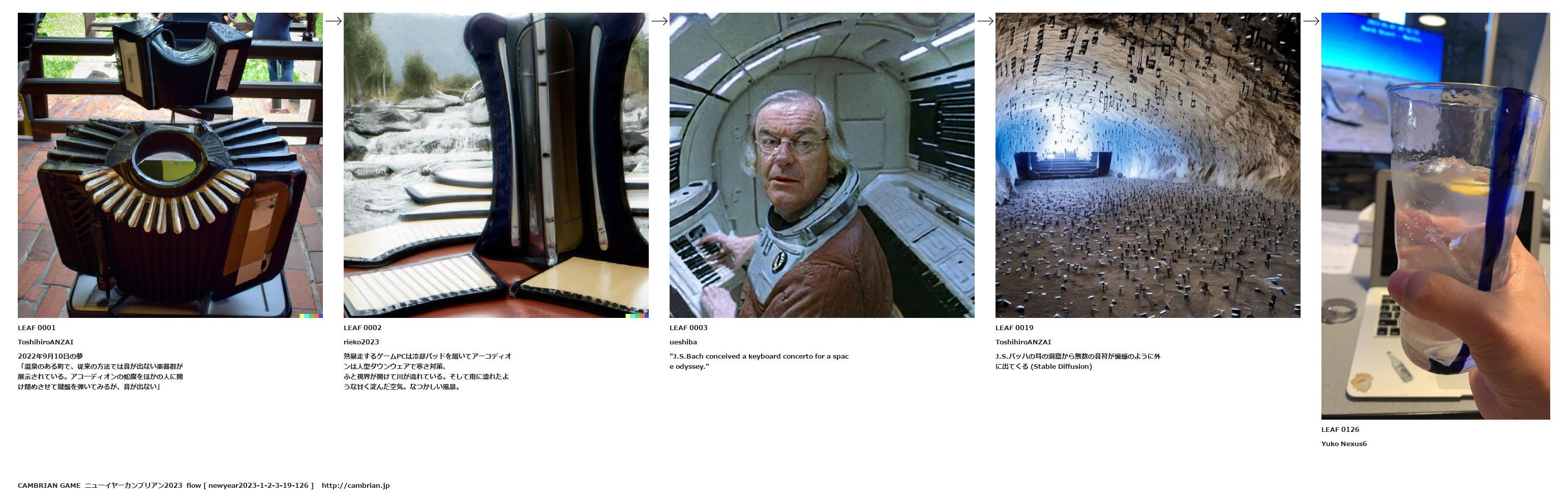 「温泉のある町で、従来の方法では音が出ない楽器群が展示されている。アコーディオンの蛇腹をほかの人に開け閉めさせて鍵盤を弾いてみるが、音が出ない」