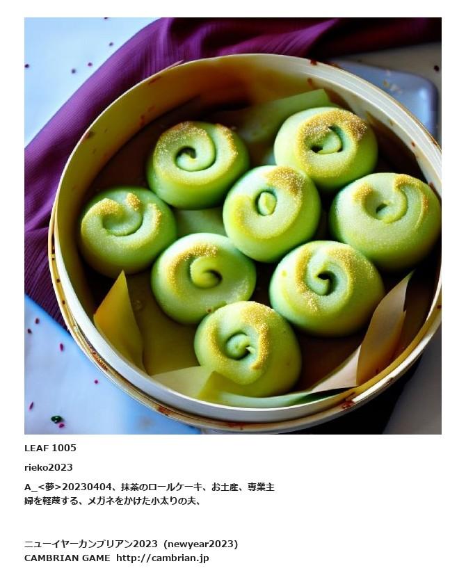 LEAF 1005rieko2023A_<夢>20230404、抹茶のロールケーキ、お土産、専業主婦を軽蔑する、メガネをかけた小太りの夫、