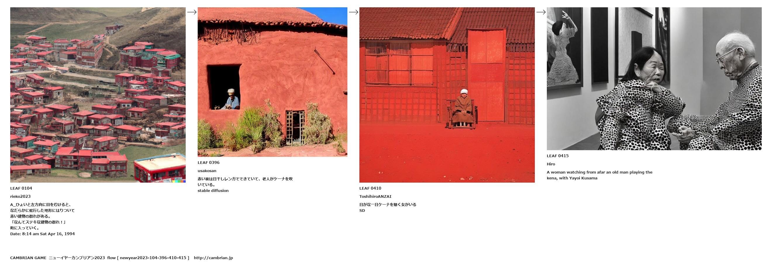 赤い家は日干しレンガでできていて、老人がケーナを吹いている。