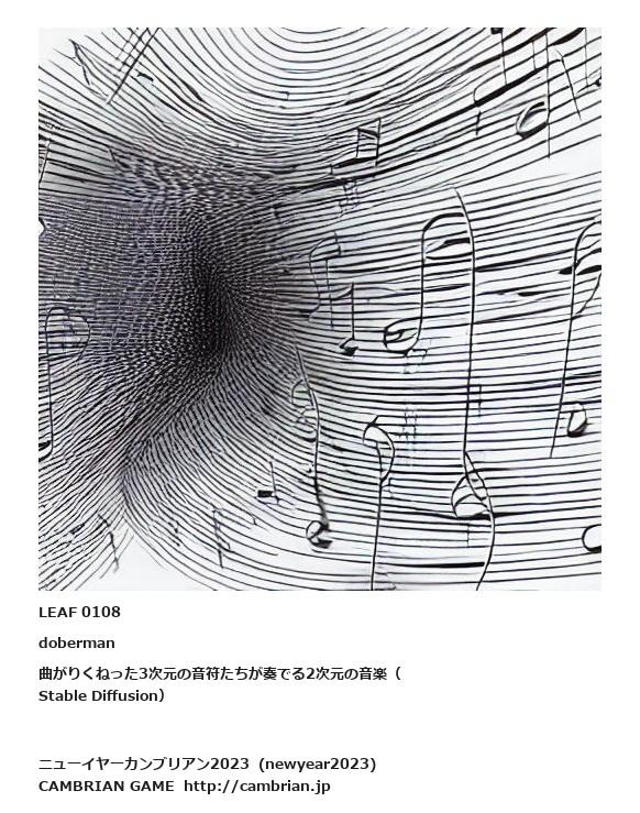 LEAF 0048フローに加えるLEAF 0108doberman曲がりくねった3次元の音符たちが奏でる2次元の音楽(Stable Diffusion)LEAF 0145フローに加えるLEAF 0120フローに加えるLEAF 0114フローに加える