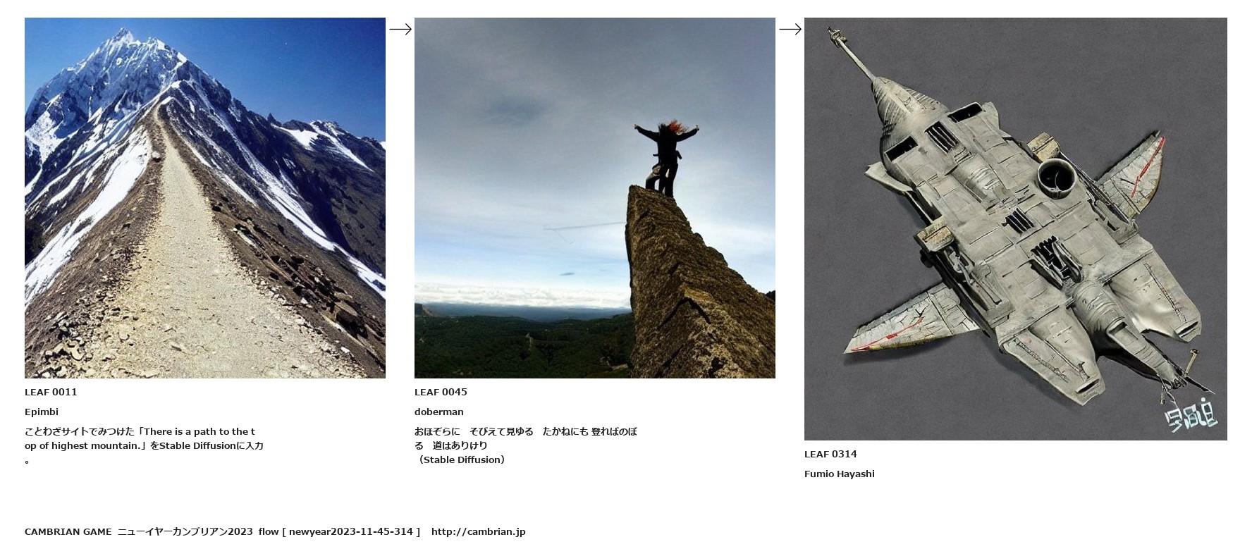 ことわざサイトでみつけた「There is a path to the top of highest mountain.」をStable Diffusionに入力。
