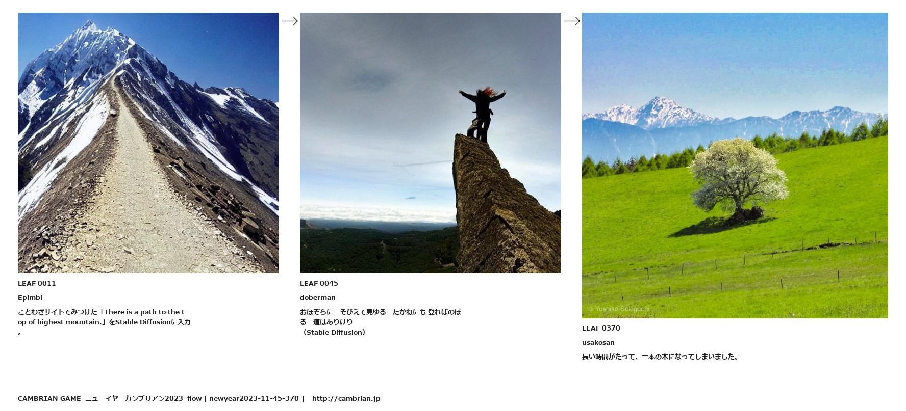 ことわざサイトでみつけた「There is a path to the top of highest mountain.」をStable Diffusionに入力。