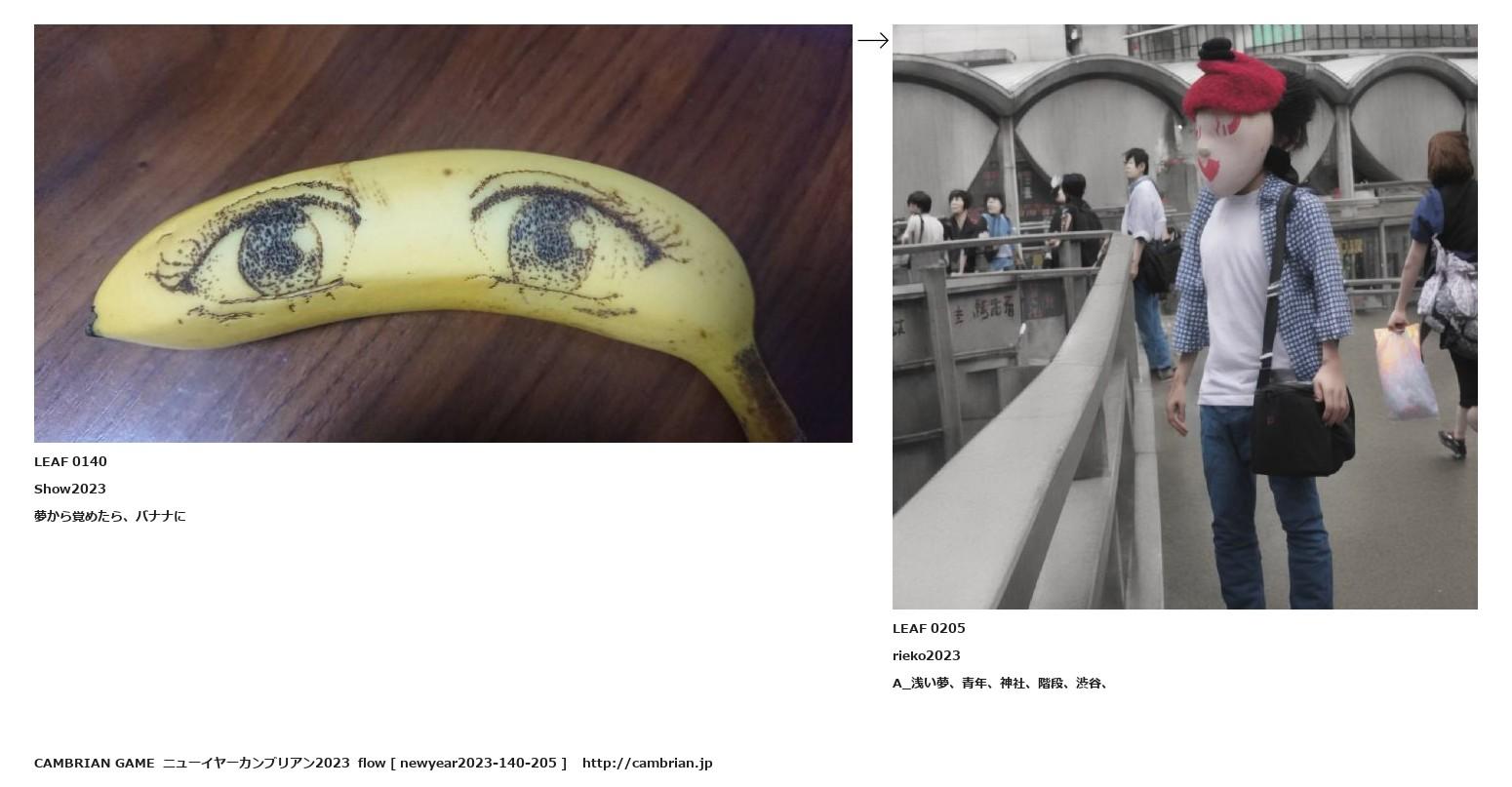 LEAF 0139フローに加えるLEAF 0140Show2023夢から覚めたら、バナナに↑ここから上をフローから外す↓ここから下をフローから外すLEAF 0205rieko2023A_浅い夢、青年、神社、階段、渋谷、