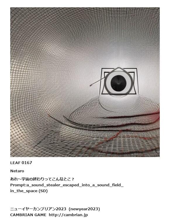 LEAF 0138フローに加えるLEAF 0167Netaroあれ〜宇宙の終わりってこんなとこ?Prompt:a_sound_stealer_escaped_into_a_sound_field_in_the_space (SD)