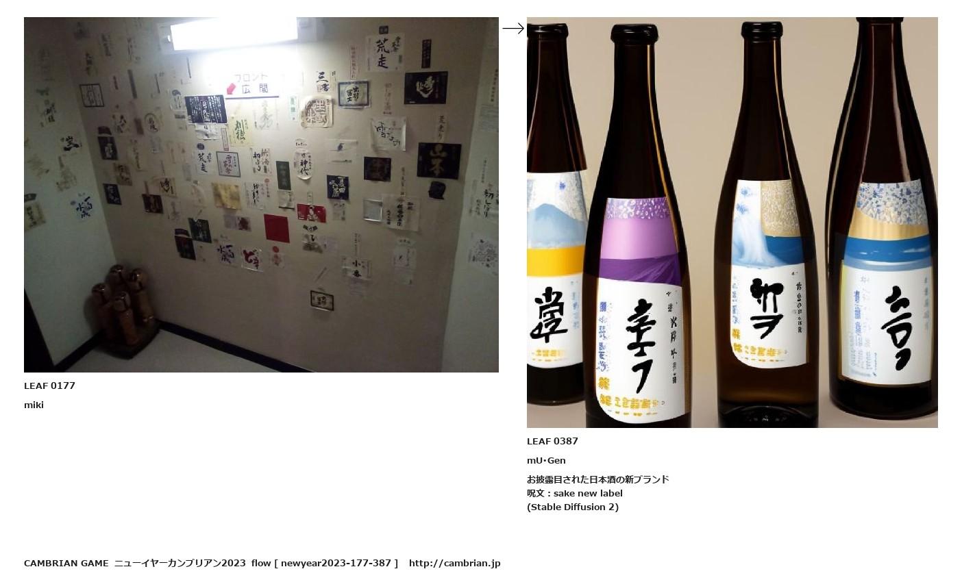 LEAF 0112フローに加えるLEAF 0177miki↑ここから上をフローから外す↓ここから下をフローから外すLEAF 0387mU・Genお披露目された日本酒の新ブランド呪文:sake new label(Stable Diffusion 2)LEAF 0398フローに加える