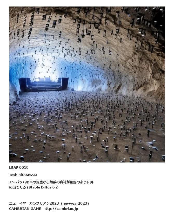 LEAF 0003フローに加えるLEAF 0019ToshihiroANZAIJ.S.バッハの耳の洞窟から無数の音符が蝙蝠のように外に出てくる (Stable Diffusion)LEAF 0126フローに加えるLEAF 0119フローに加えるLEAF 0047フローに加える