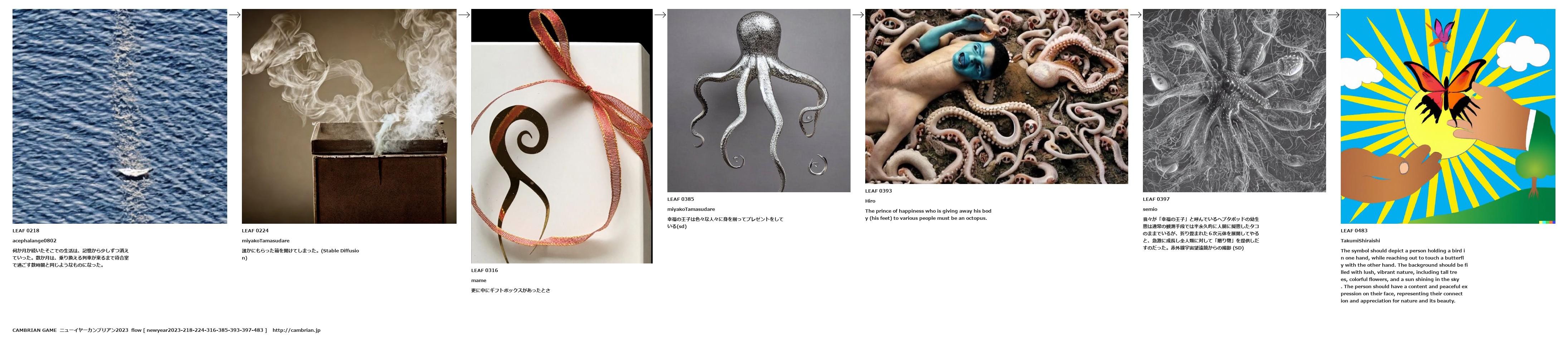 我々が「幸福の王子」と呼んでいるヘプタポッドの幼生態は通常の観測手段では半永久的に人間に擬態したタコのままでいるが、折り畳まれた6次元体を展開してやると、急激に成長し全人類に対して「贈り物」を提供しだすのだった。赤外線宇宙望遠鏡からの撮影 (SD)