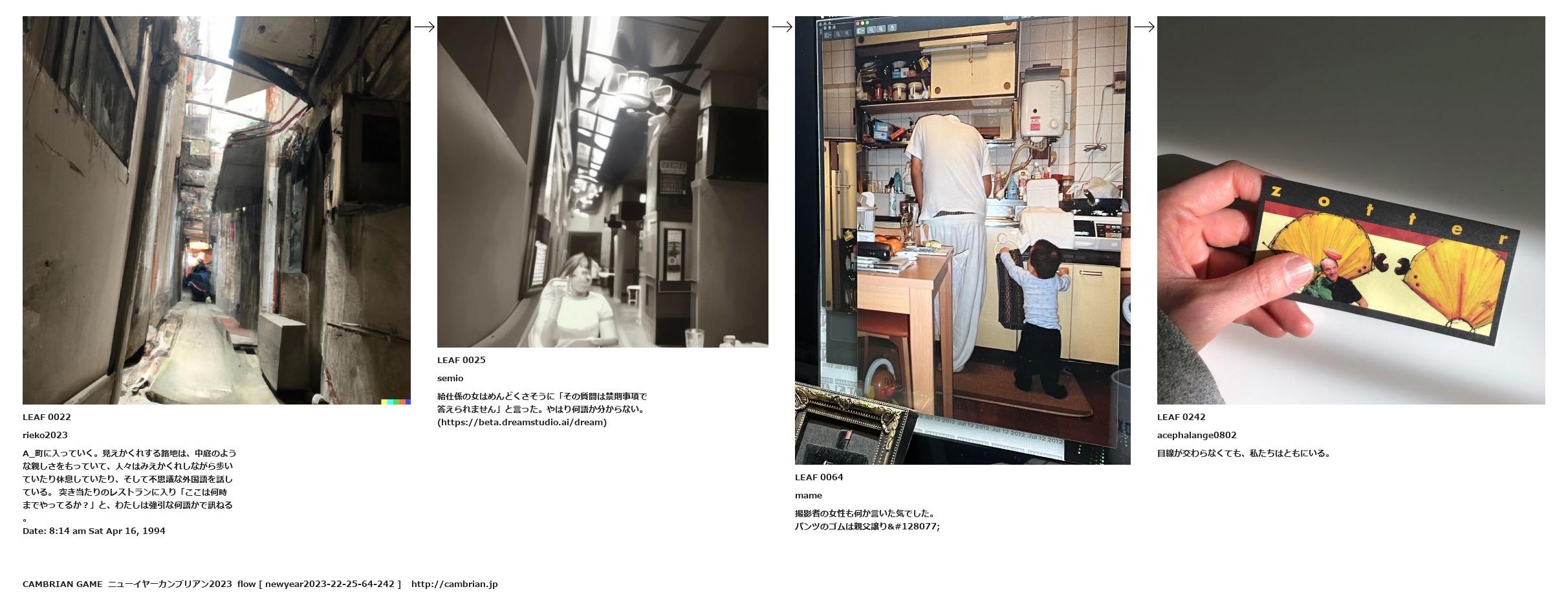 A_町に入っていく。見えかくれする路地は、中庭のような親しさをもっていて、人々はみえかくれしながら歩いていたり休息していたり、そして不思議な外国語を話している。 突き当たりのレストランに入り「ここは何時までやってるか?」と、わたしは強引な何語かで訊ねる。