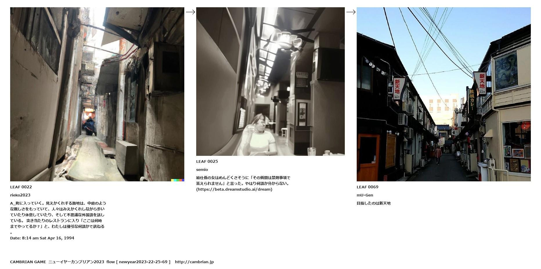 A_町に入っていく。見えかくれする路地は、中庭のような親しさをもっていて、人々はみえかくれしながら歩いていたり休息していたり、そして不思議な外国語を話している。 突き当たりのレストランに入り「ここは何時までやってるか?」と、わたしは強引な何語かで訊ねる。