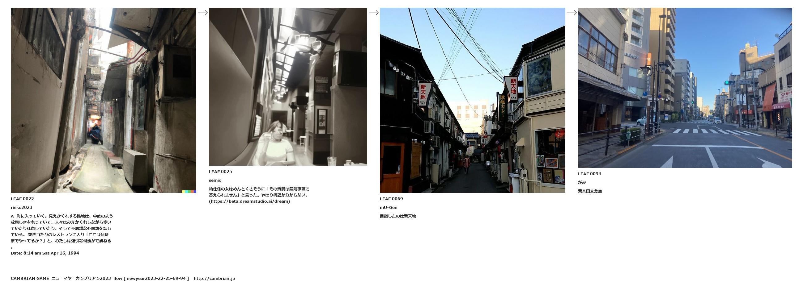 A_町に入っていく。見えかくれする路地は、中庭のような親しさをもっていて、人々はみえかくれしながら歩いていたり休息していたり、そして不思議な外国語を話している。 突き当たりのレストランに入り「ここは何時までやってるか?」と、わたしは強引な何語かで訊ねる。