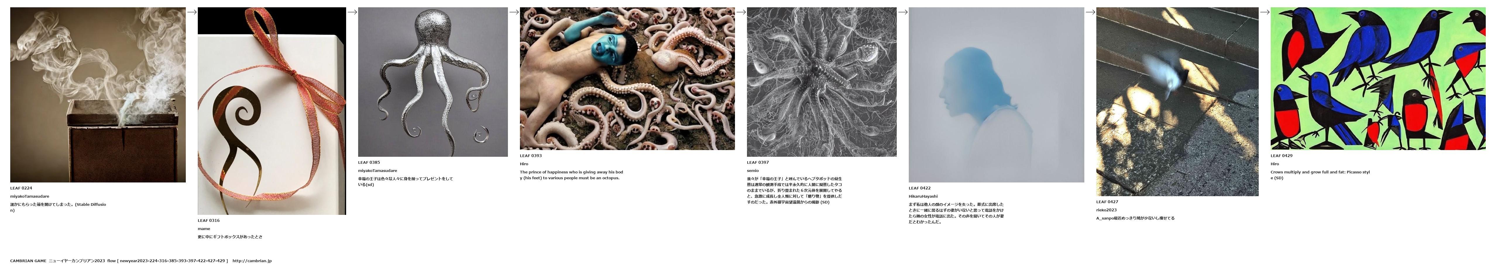 我々が「幸福の王子」と呼んでいるヘプタポッドの幼生態は通常の観測手段では半永久的に人間に擬態したタコのままでいるが、折り畳まれた6次元体を展開してやると、急激に成長し全人類に対して「贈り物」を提供しだすのだった。赤外線宇宙望遠鏡からの撮影 (SD)