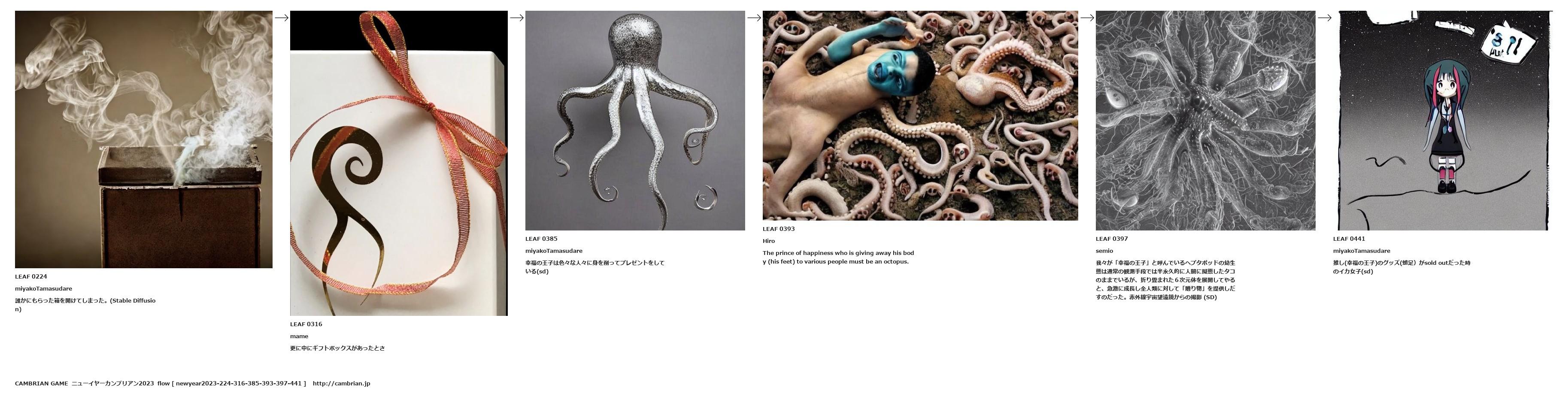 我々が「幸福の王子」と呼んでいるヘプタポッドの幼生態は通常の観測手段では半永久的に人間に擬態したタコのままでいるが、折り畳まれた6次元体を展開してやると、急激に成長し全人類に対して「贈り物」を提供しだすのだった。赤外線宇宙望遠鏡からの撮影 (SD)