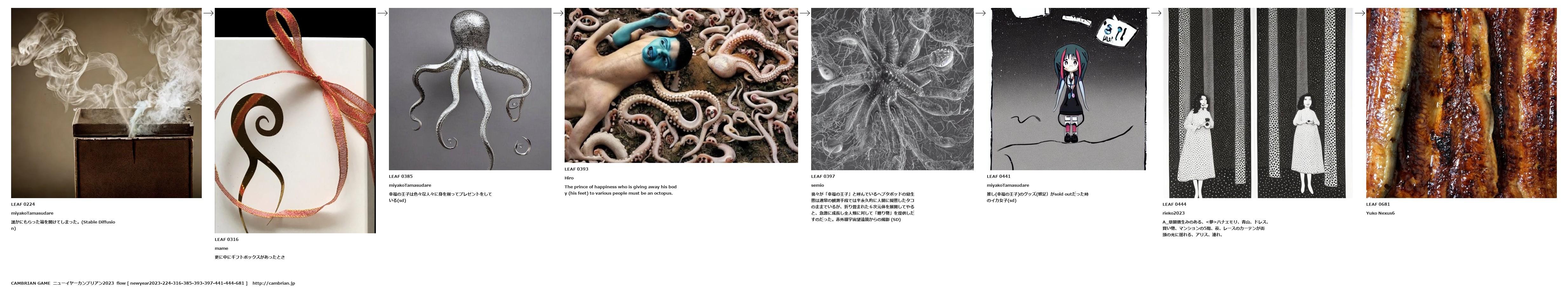 我々が「幸福の王子」と呼んでいるヘプタポッドの幼生態は通常の観測手段では半永久的に人間に擬態したタコのままでいるが、折り畳まれた6次元体を展開してやると、急激に成長し全人類に対して「贈り物」を提供しだすのだった。赤外線宇宙望遠鏡からの撮影 (SD)