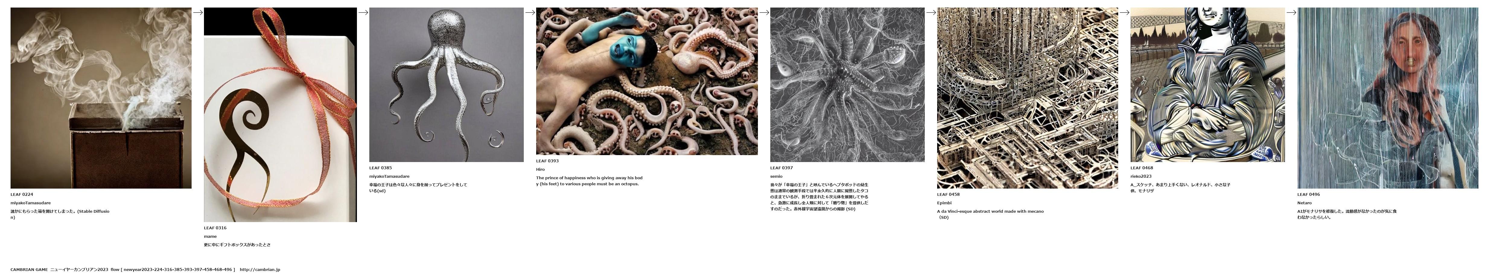 我々が「幸福の王子」と呼んでいるヘプタポッドの幼生態は通常の観測手段では半永久的に人間に擬態したタコのままでいるが、折り畳まれた6次元体を展開してやると、急激に成長し全人類に対して「贈り物」を提供しだすのだった。赤外線宇宙望遠鏡からの撮影 (SD)