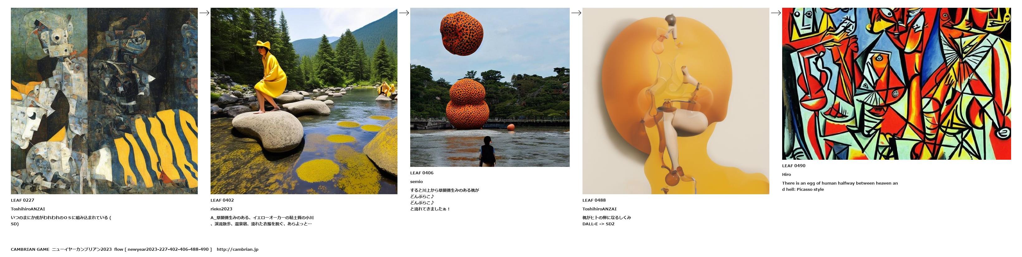 A_草間彌生みのある、イエローオーカーの粘土質の小川、渓流散歩、温泉宿、濡れた衣服を脱ぐ、あらよっと…