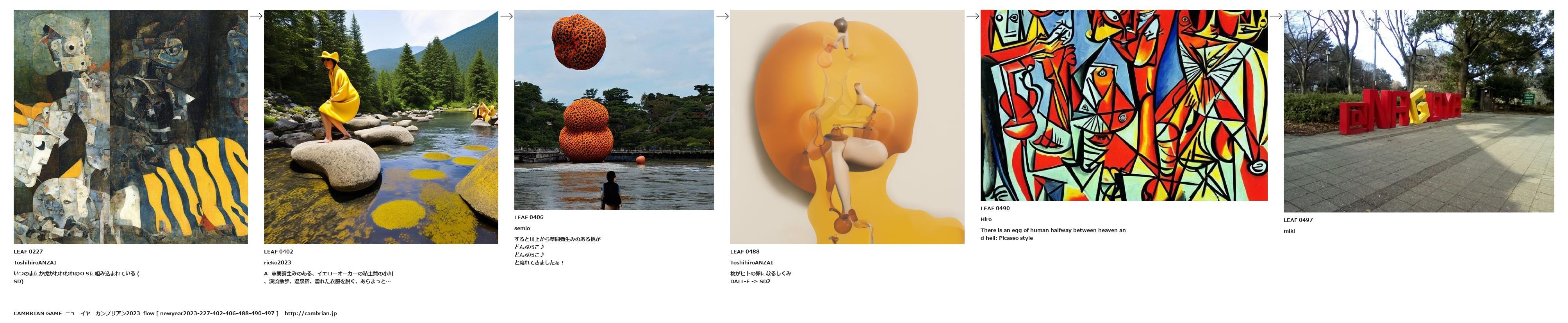A_草間彌生みのある、イエローオーカーの粘土質の小川、渓流散歩、温泉宿、濡れた衣服を脱ぐ、あらよっと…