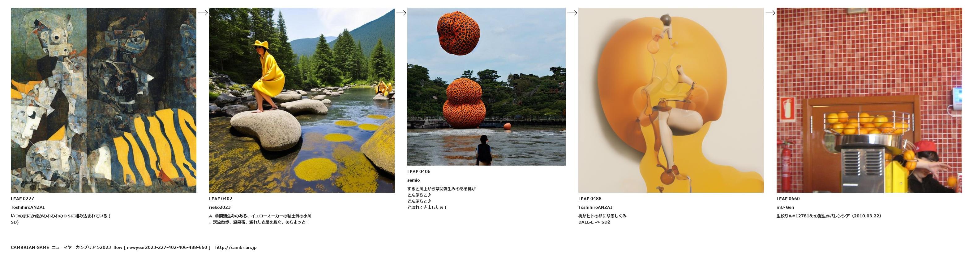 A_草間彌生みのある、イエローオーカーの粘土質の小川、渓流散歩、温泉宿、濡れた衣服を脱ぐ、あらよっと…