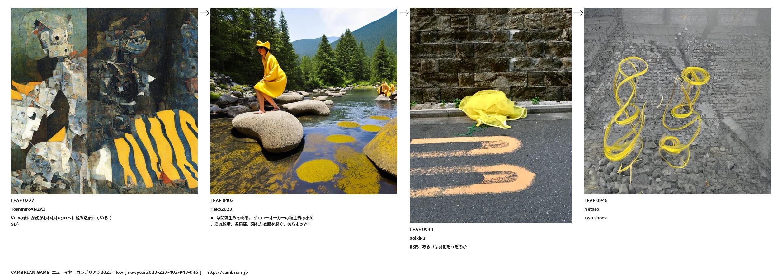 A_草間彌生みのある、イエローオーカーの粘土質の小川、渓流散歩、温泉宿、濡れた衣服を脱ぐ、あらよっと…