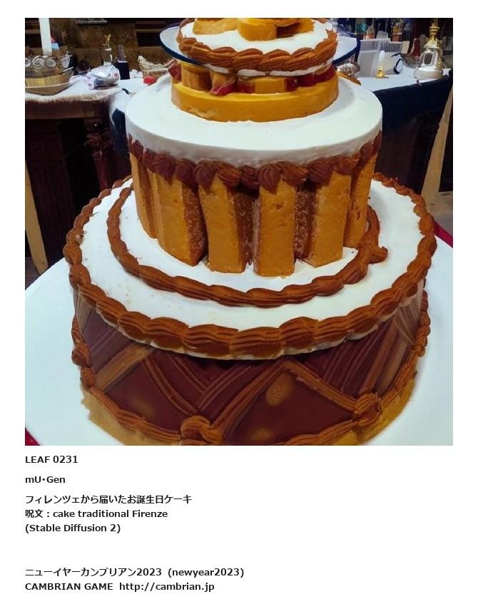 LEAF 0231mU・Genフィレンツェから届いたお誕生日ケーキ呪文:cake traditional Firenze(Stable Diffusion 2)