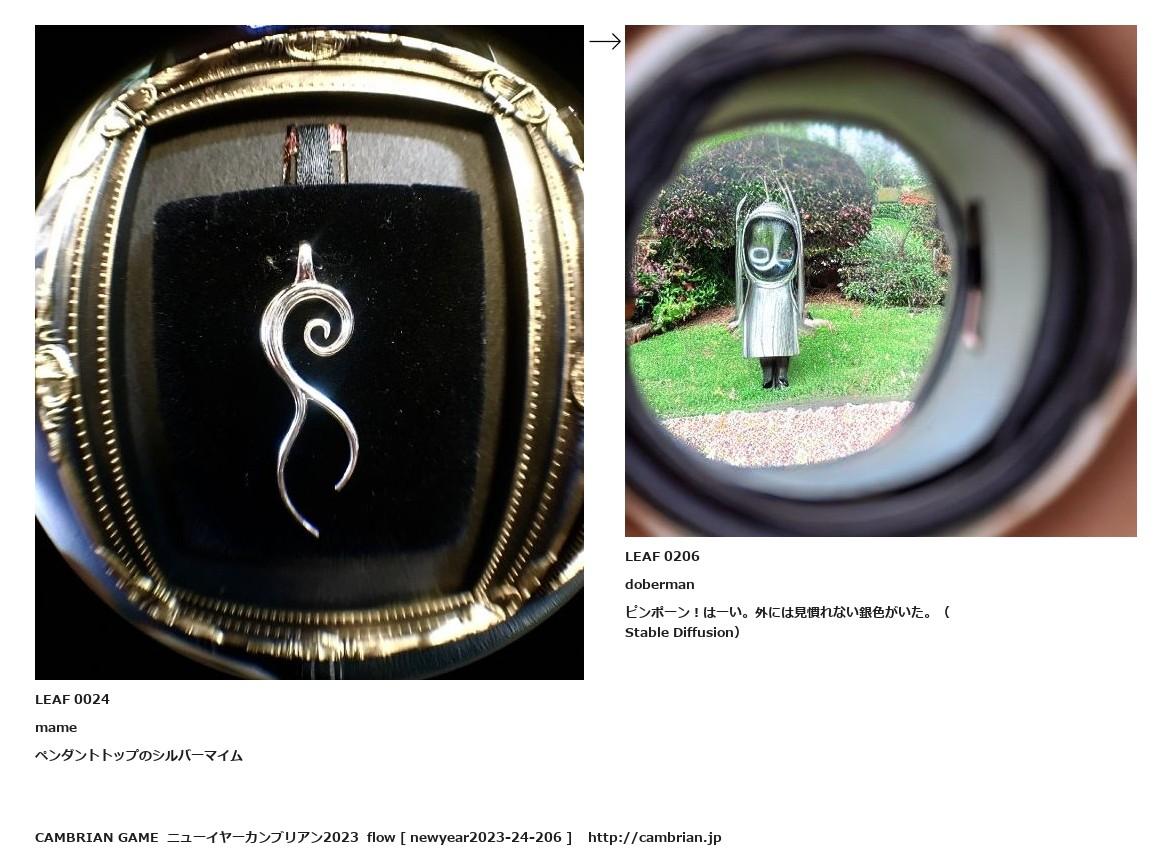 LEAF 0020フローに加えるLEAF 0024mameペンダントトップのシルバーマイム↑ここから上をフローから外す↓ここから下をフローから外すLEAF 0206dobermanピンポーン!はーい。外には見慣れない銀色がいた。(Stable Diffusion)LEAF 0345フローに加えるLEAF 0329フローに加える