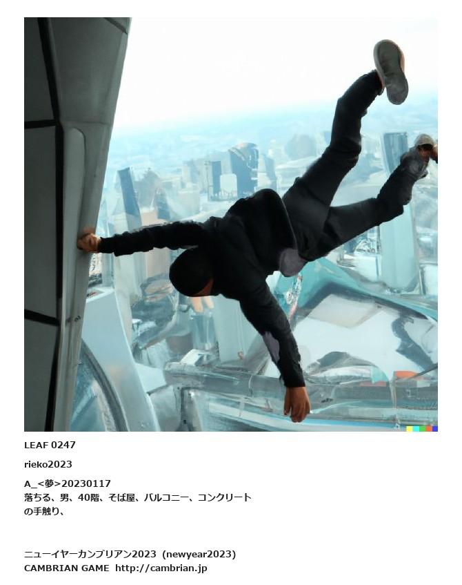 LEAF 0223フローに加えるLEAF 0247rieko2023A_<夢>20230117落ちる、男、40階、そば屋、バルコニー、コンクリートの手触り、LEAF 0307フローに加えるLEAF 0287フローに加える