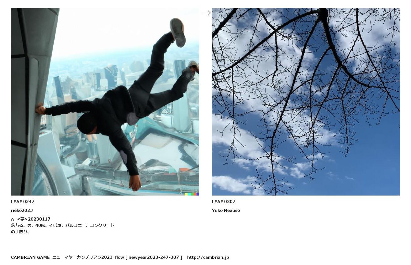 LEAF 0223フローに加えるLEAF 0247rieko2023A_<夢>20230117落ちる、男、40階、そば屋、バルコニー、コンクリートの手触り、↑ここから上をフローから外す↓ここから下をフローから外すLEAF 0307Yuko Nexus6