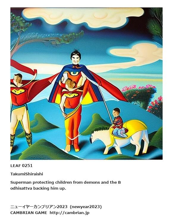 LEAF 0211フローに加えるLEAF 0251TakumiShiraishiSuperman protecting children from demons and the Bodhisattva backing him up.LEAF 0745フローに加えるLEAF 0271フローに加える