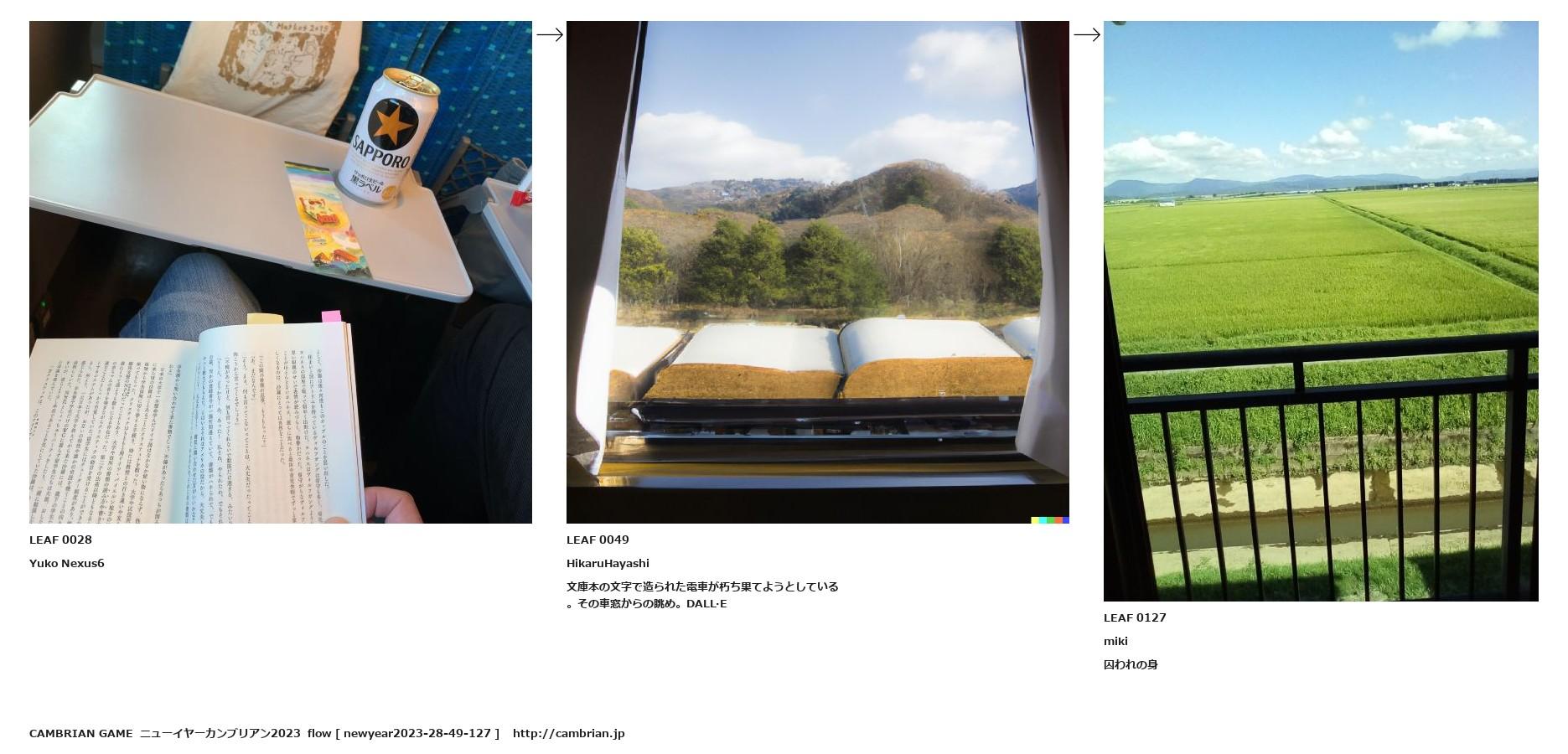 文庫本の文字で造られた電車が朽ち果てようとしている。その車窓からの眺め。DALL·E