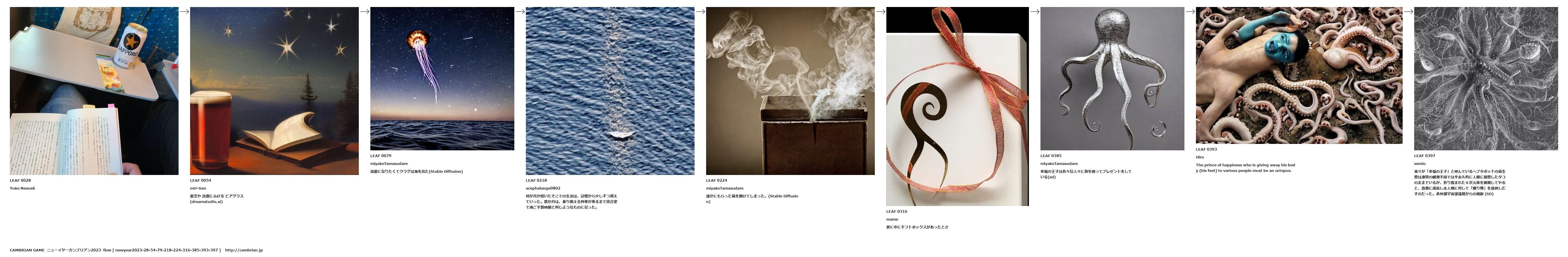 我々が「幸福の王子」と呼んでいるヘプタポッドの幼生態は通常の観測手段では半永久的に人間に擬態したタコのままでいるが、折り畳まれた6次元体を展開してやると、急激に成長し全人類に対して「贈り物」を提供しだすのだった。赤外線宇宙望遠鏡からの撮影 (SD)