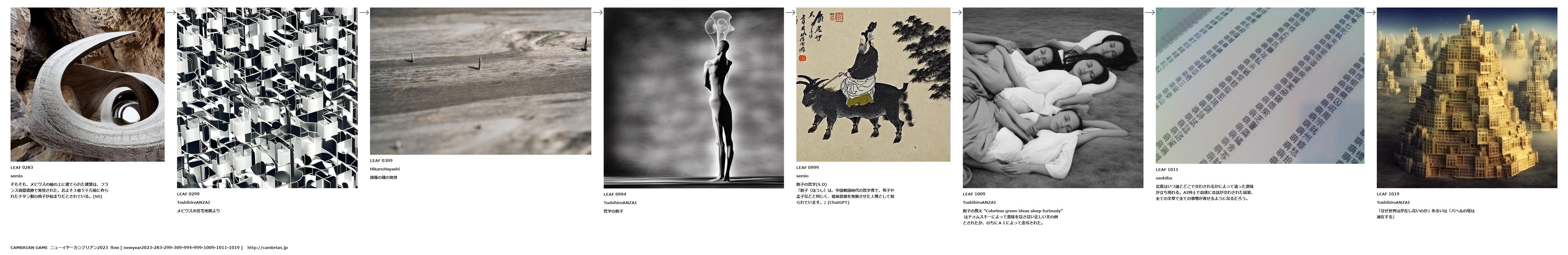 胞子の教え "Colorless green ideas sleep furiously" はチョムスキーによって意味をなさない正しい文の例とされたが、のちにAIによって念写された。