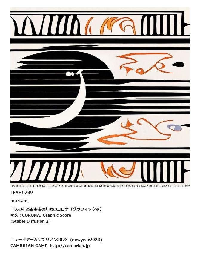 LEAF 0289mU・Gen三人の打楽器奏者のためのコロナ(グラフィック譜)呪文:CORONA, Graphic Score(Stable Diffusion 2)