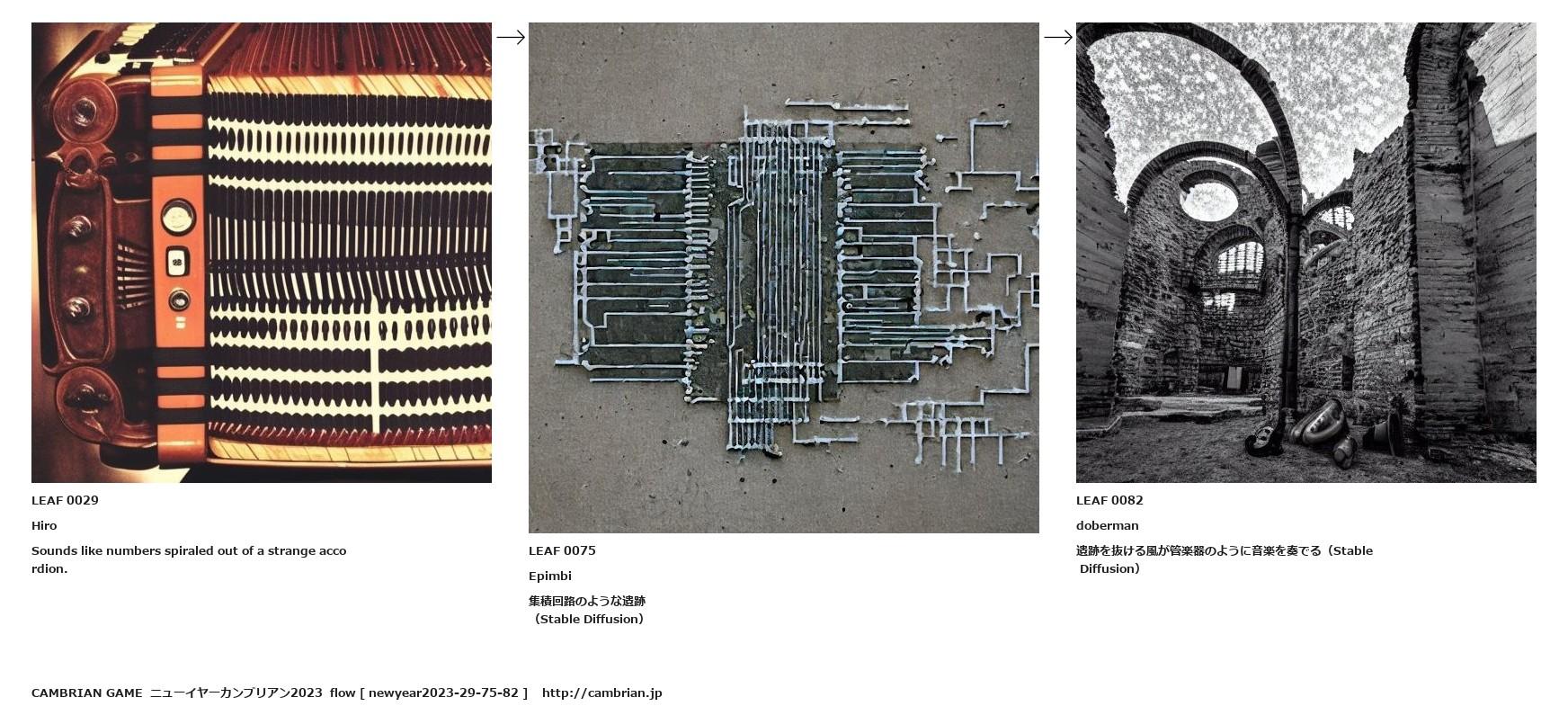遺跡を抜ける風が管楽器のように音楽を奏でる(Stable Diffusion)