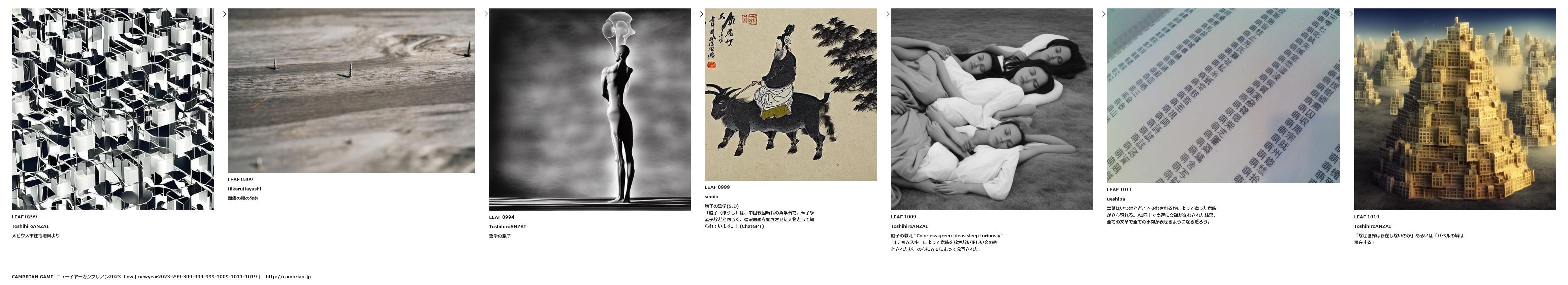 胞子の教え "Colorless green ideas sleep furiously" はチョムスキーによって意味をなさない正しい文の例とされたが、のちにAIによって念写された。
