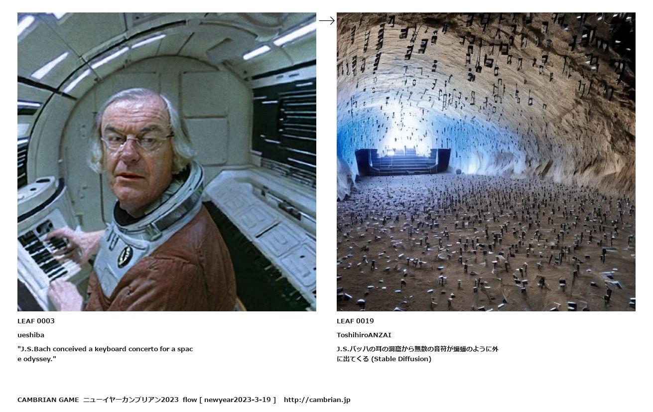 LEAF 0002フローに加えるLEAF 0003ueshiba"J.S.Bach conceived a keyboard concerto for a space odyssey."↑ここから上をフローから外す↓ここから下をフローから外すLEAF 0019ToshihiroANZAIJ.S.バッハの耳の洞窟から無数の音符が蝙蝠のように外に出てくる (Stable Diffusion)LEAF 0126フローに加えるLEAF 0119フローに加えるLEAF 0047フローに加える