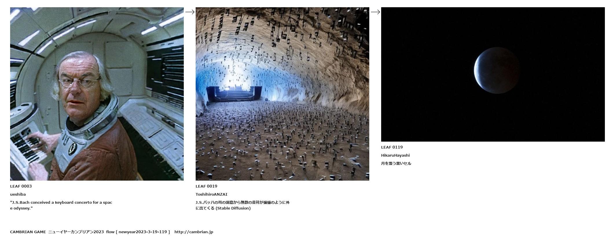 J.S.バッハの耳の洞窟から無数の音符が蝙蝠のように外に出てくる (Stable Diffusion)