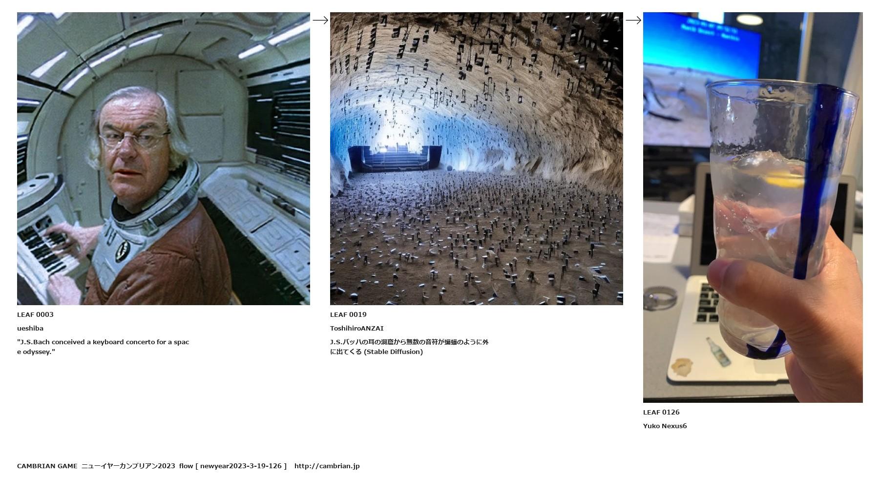 J.S.バッハの耳の洞窟から無数の音符が蝙蝠のように外に出てくる (Stable Diffusion)