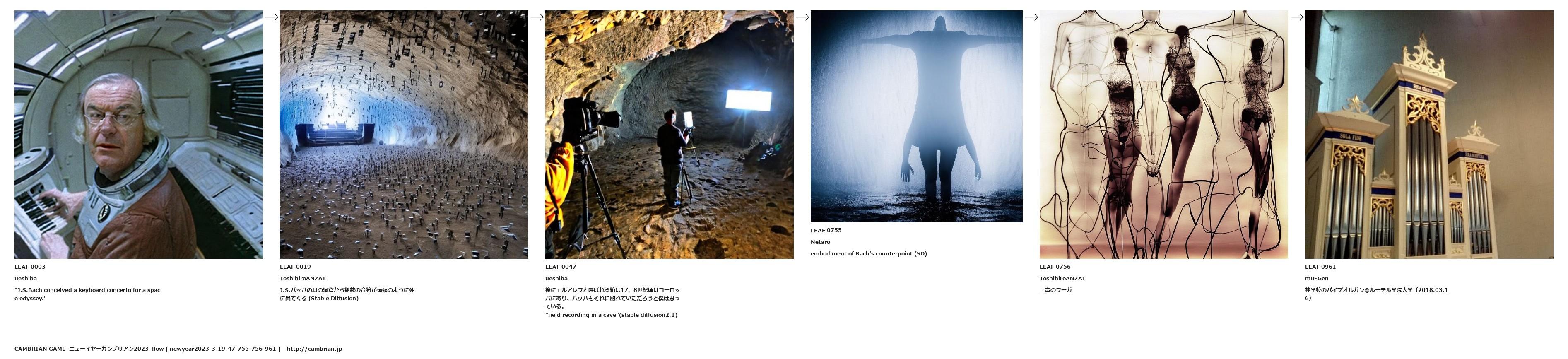 J.S.バッハの耳の洞窟から無数の音符が蝙蝠のように外に出てくる (Stable Diffusion)