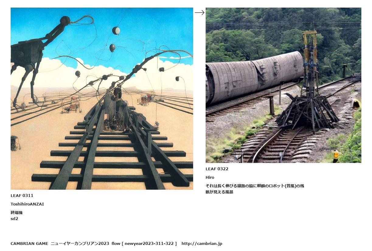 LEAF 0097フローに加えるLEAF 0311ToshihiroANZAI終端機sd2↑ここから上をフローから外す↓ここから下をフローから外すLEAF 0322Hiroそれは長く伸びる線路の脇に麒麟のロボット(昔風)の残骸が見える風景LEAF 0344フローに加えるLEAF 0323フローに加える